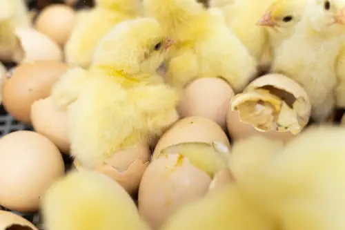Los huevos fértiles se incuban durante 21 días hasta el nacimiento de los pollitos.